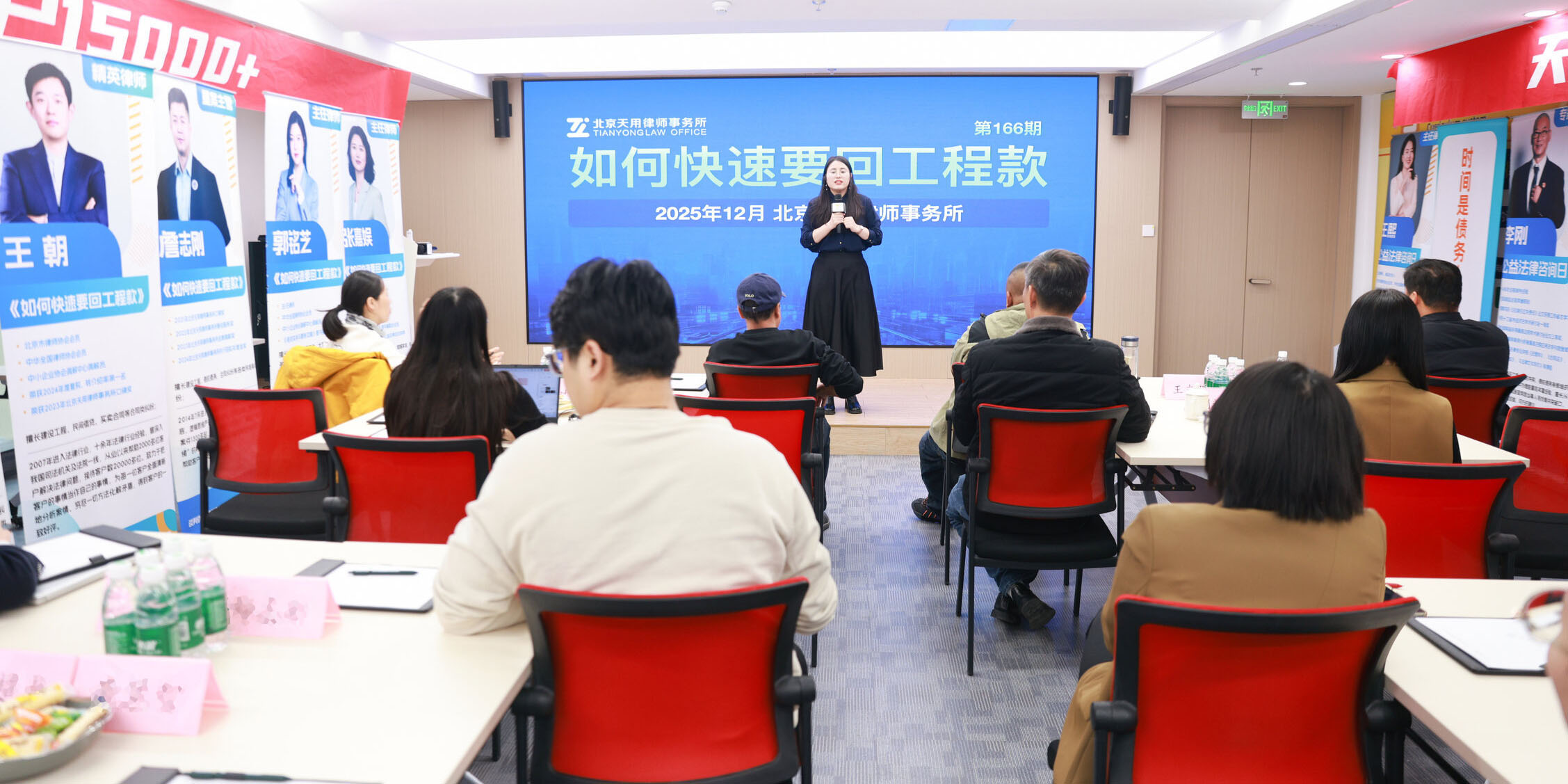 2025年12月19日下午,一场专为建工老板解决工程款纠纷的专题讲座——第166期《如何快速要回工程款》讲座,在北京天用律师事务所开展,十多位建工老板奔赴北京参加了讲座,获取回款方案。