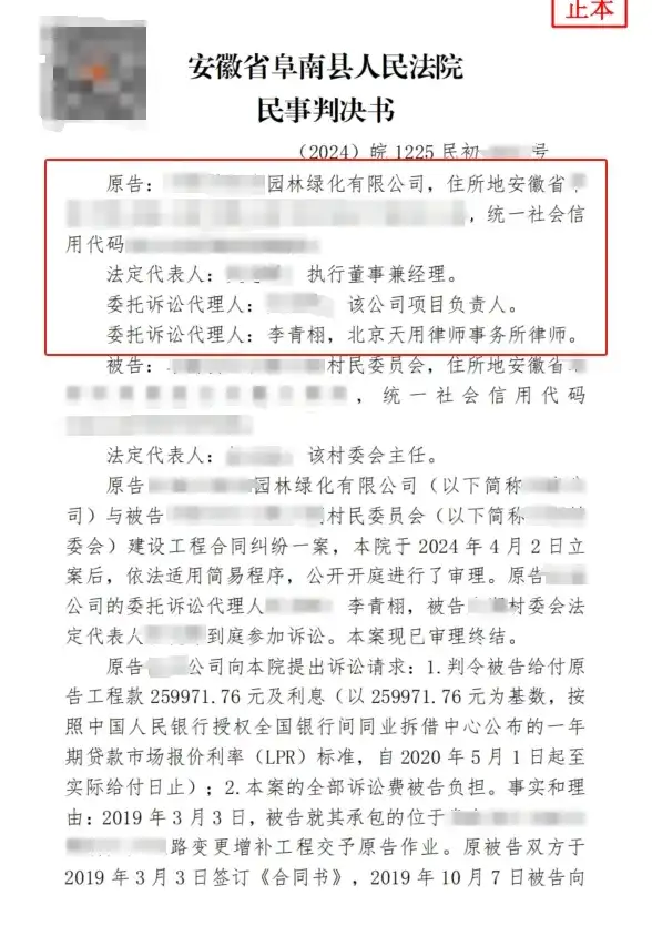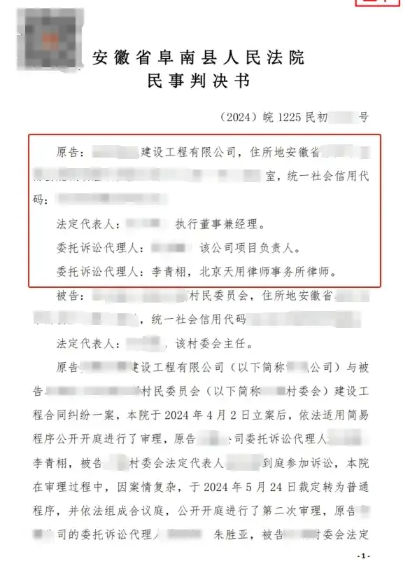 天用律师团队收集、整理相关的合同、发票、竣工验收表等证明文件,以及由某项目管理集团有限公司出具的权威审核报告书。针对村委会提出的重新审计请求,天用律师团队提供了详尽的反驳材料,并成功说服法院采纳了现有审计报告的结果。