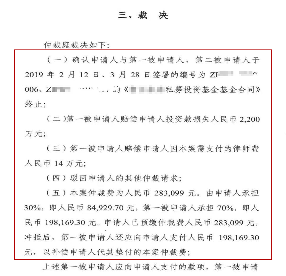2.基金公司需赔偿乔女士投资款损失人民币2,200万元;