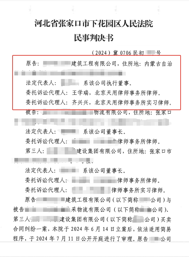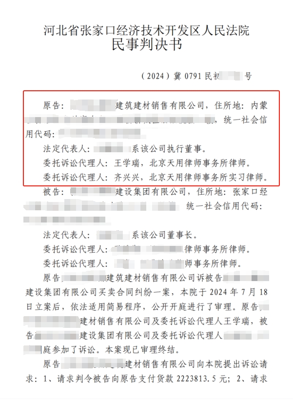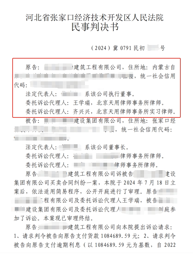 3、时间最短化:从立案到判决生效仅用了不到3个月的时间,天用律师不仅帮助委托人迅速收回了货款,还减少了长期诉讼可能给企业带来的额外成本和不确定性。
