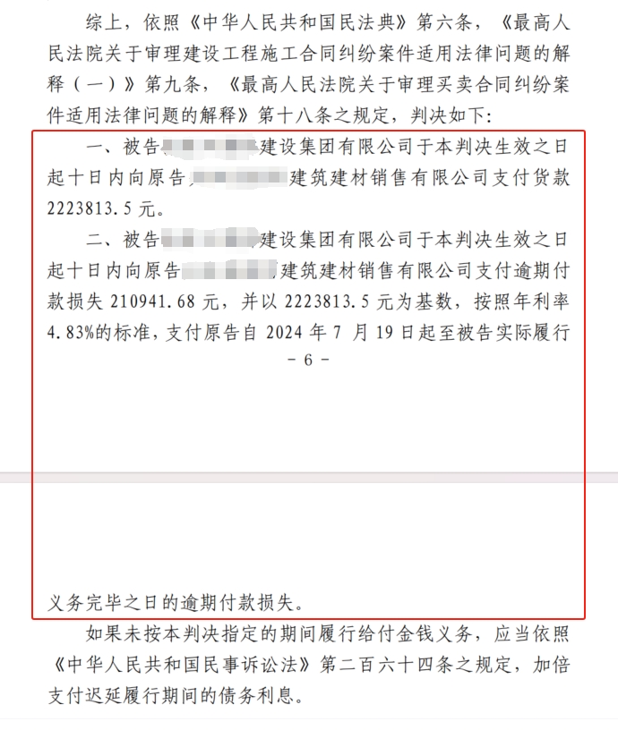 合同签订后,建材销售公司和建筑工程公司即履行供货义务,直至2022年7月,案涉建设工程完工。后经三方对账,确认物流公司仍欠付两个供货公司货款合计450万元。沈总与钱总多次要求物流公司及时支付款项,物流公司以无力支付为由拒绝。
