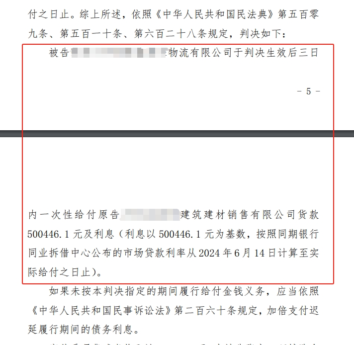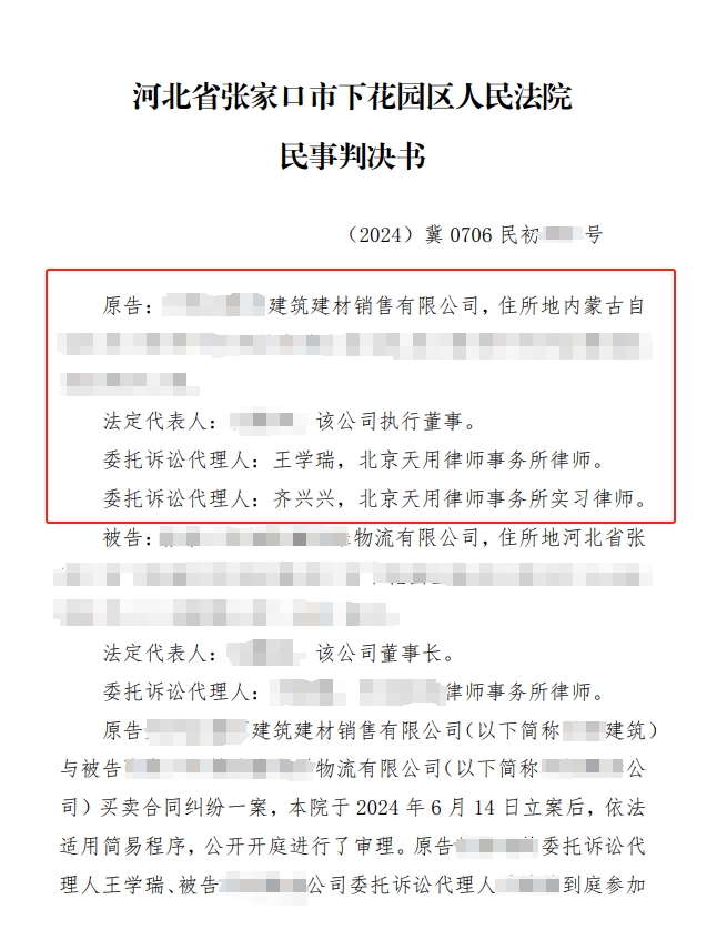 在庭审中,天用律师团队全面展示了委托人的证据,有力反驳了物流公司的抗辩理由。通过专业的法律意见和充分的证据支持,坚决捍卫了委托人的合法权益。不仅全额追回了货款本金450万元,还获得了自起诉之日起至实际给付之日止的同期银行贷款利率计算的利息,保障了委托人的利益最大化!