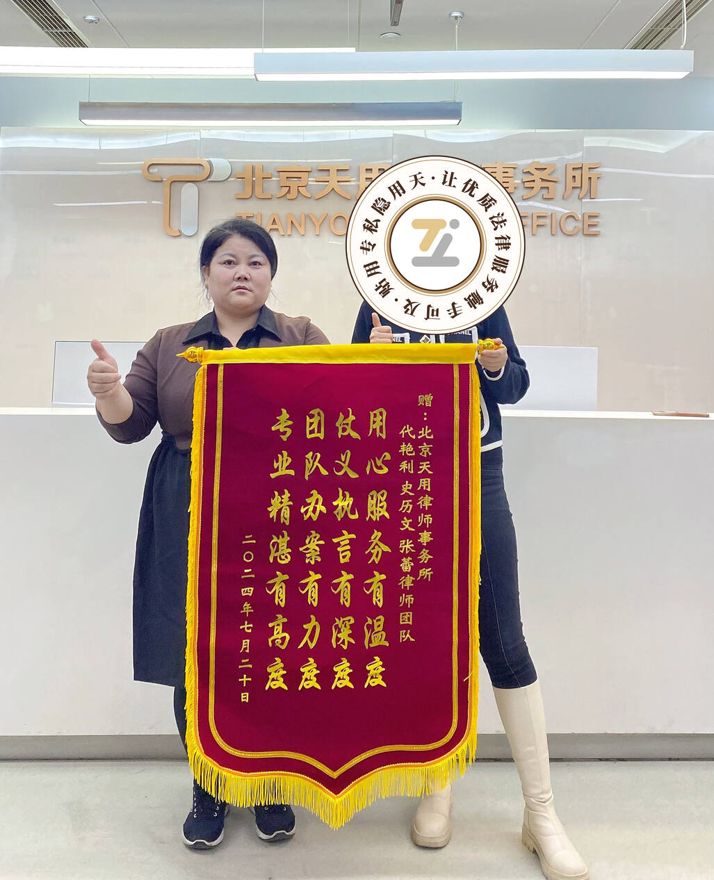 拿到判决书的那一刻,肖先生终于松了一口气,自己出资和居住了十几年的房子终于可以办理属于自己的房产证了,后续也可以安心生活了。为了表达对天用律师的感激之情送来一面锦旗表心意!