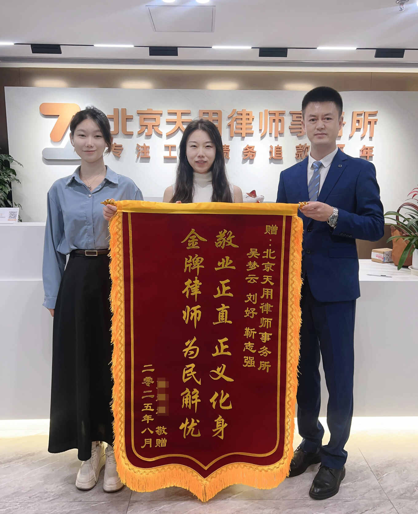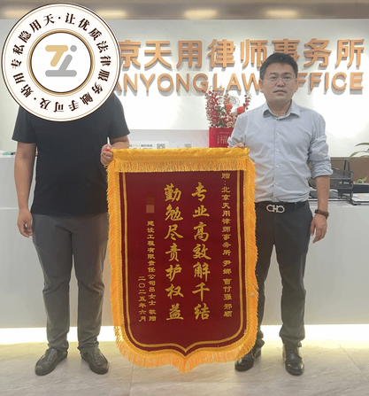 建设公司老板特送来一面锦旗表示感谢,在对天用律师的专业能力与良好口碑的影响下,同时又委托了一个其他案件!
