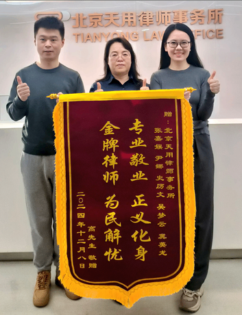当李总收到那笔迟到已久的款项时,激动得几乎说不出话来,特意制作了一面锦旗送到天用律所,表达感激之情!