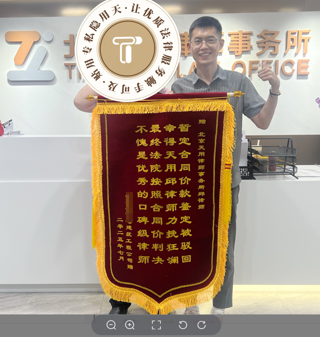 天用律所凭借专业的办案能力和丰富的实践经验,成功为委托人建筑公司追回了被拖欠的工程款,赢得了客户的高度赞誉和信任。客户特意送来一面写着小作文的锦旗,以表达对天用律所的感谢!
