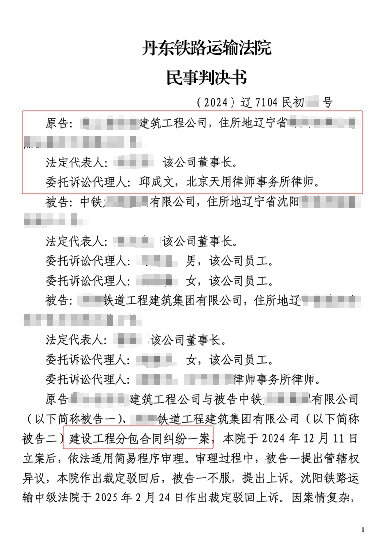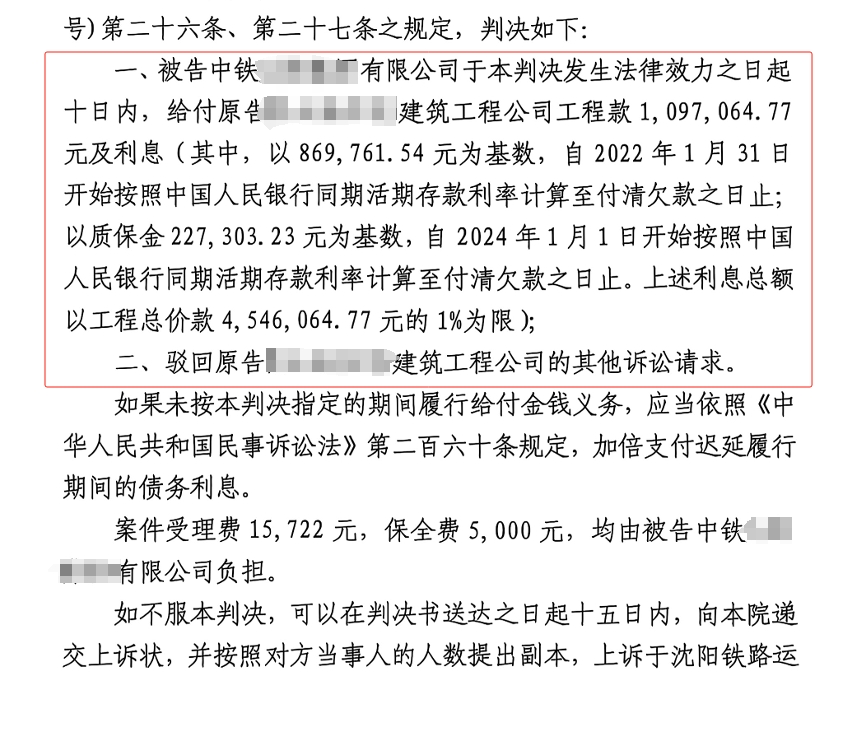 最终,法院采纳了天用律师的代理意见,判决被告支付建筑公司剩余工程款110万及利息。