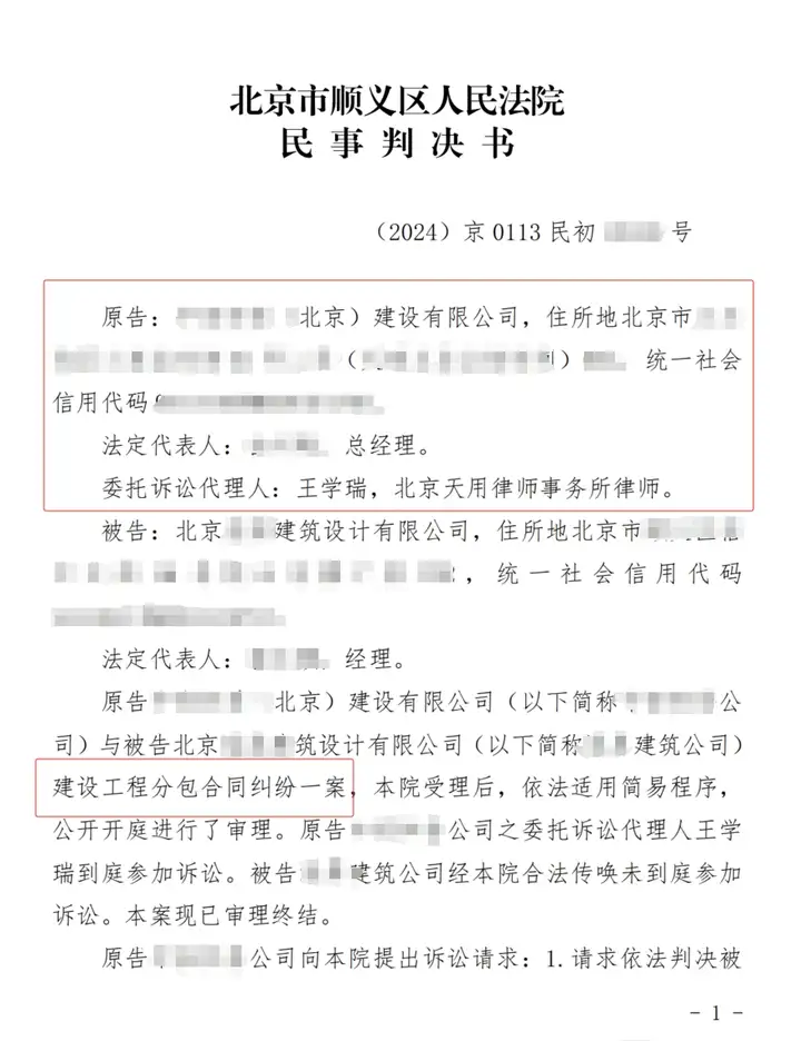 这给委托人的公司信用和财产造成了巨大的损失,委托人心急如焚,为维护自身合法权益找到北京天用律所,希望将建筑公司诉至法院,通过法律途径追讨应得的工程款及利息补偿。