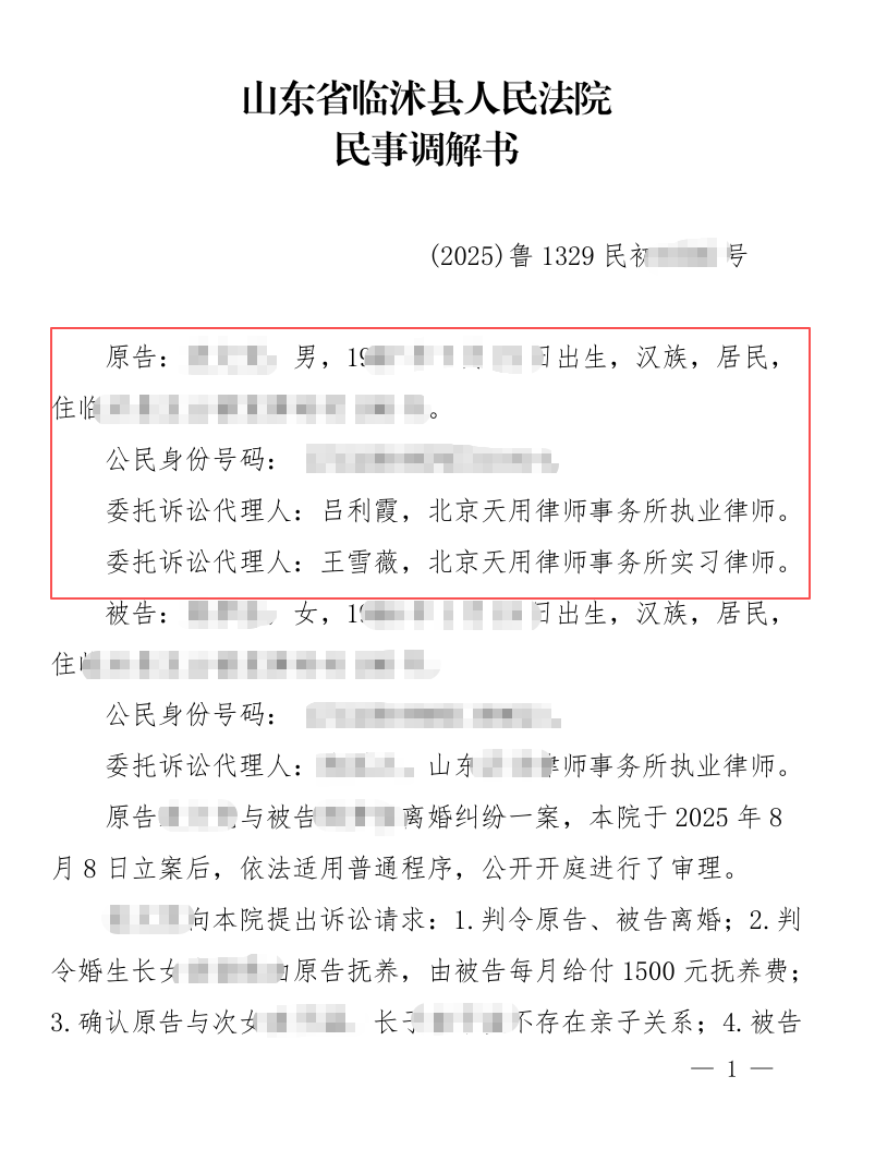 为了帮助文先生能够快速离婚并争取最大权益,天用律师团队不仅在法理上据理力争,更在庭审中极力推动调解,力求高效、妥善解决纠纷。