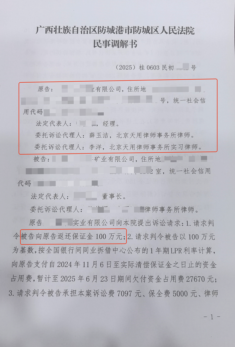 天用律师第一时间提起诉讼,同时精准出击,申请法院成功冻结了矿业公司账户下的104万余元存款。这一步,为后续谈判创造了决定性优势,将回款的可能性牢牢握在手中。
