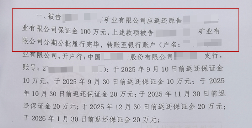 同月,矿业公司出具《退款承诺书》,也白纸黑字承诺分期退还全部保证金。