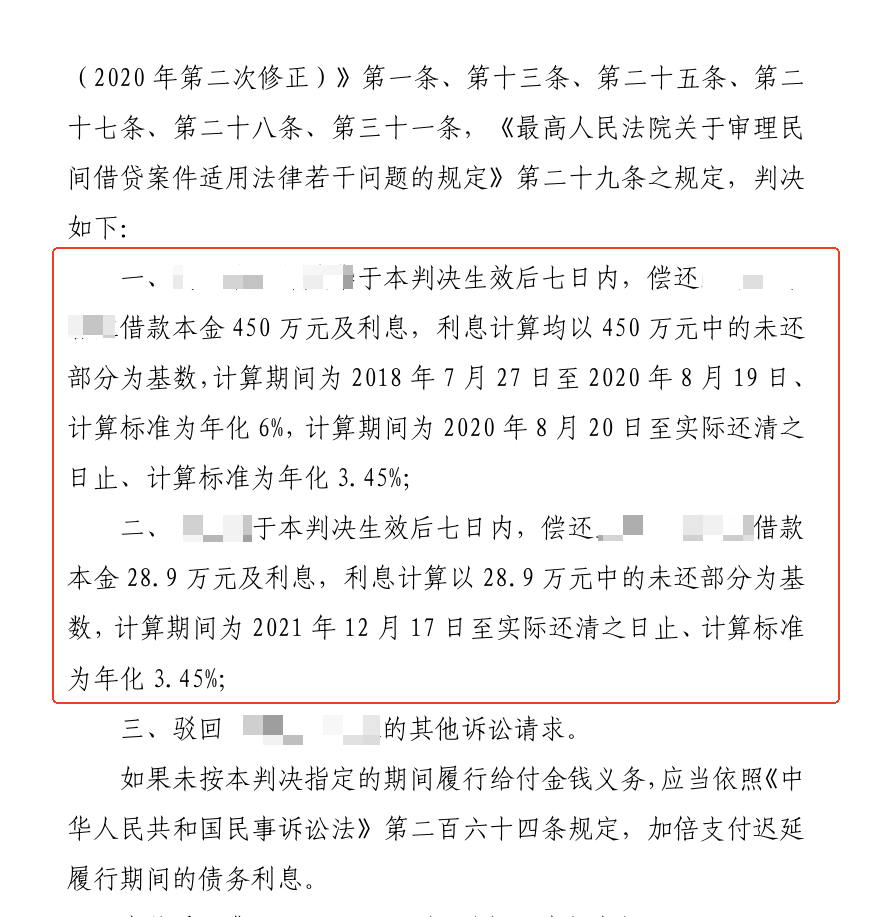 一审法院全面支持了我方全部诉讼请求!判决刘女士、郭某共同偿还借款本金450万元及利息;刘女士另偿还借款本金28.9万元及利息。