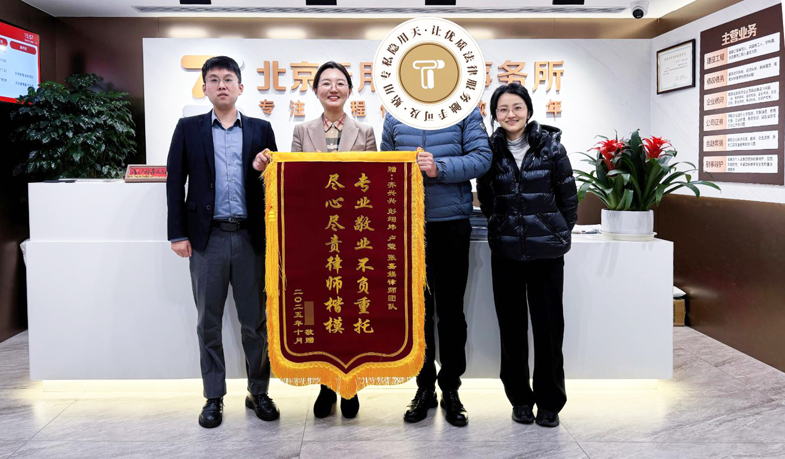 判决书送达的那一刻,堵在马先生心头近一年的大石头终于落地,他对天用律师在绝境中展现的专业能力和不负所托的敬业精神感激不尽,特意定制了一面锦旗专程送到律所,以表达他最诚挚的谢意。