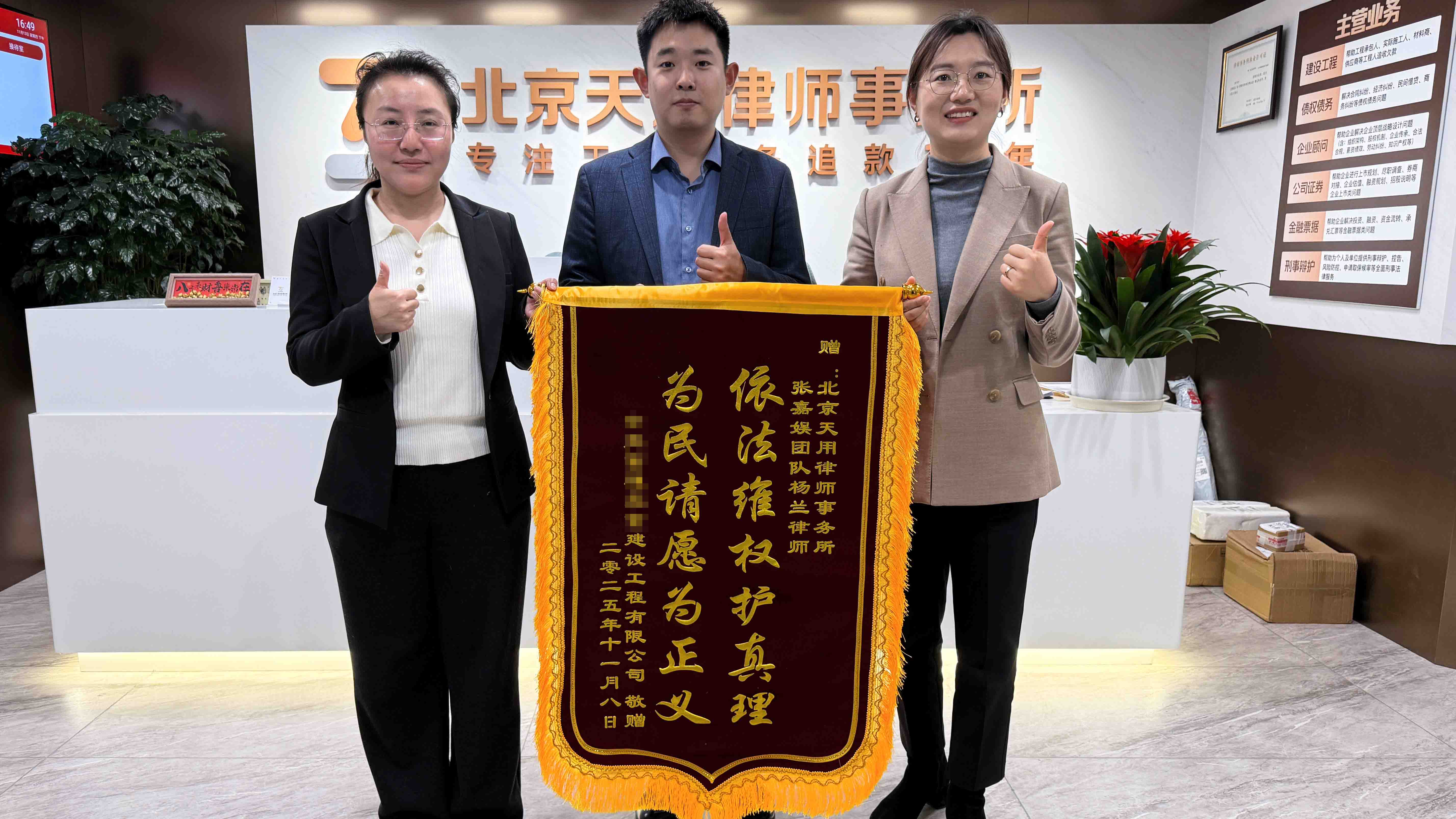 案件圆满结束后,客户对天用律师事务所办案团队的专业能力与敬业精神给予了高度评价,并专程送来锦旗以示感谢。这面锦旗,不仅是对本案结果的肯定,更是对天用律师在建设工程领域深厚专业底蕴的认可。