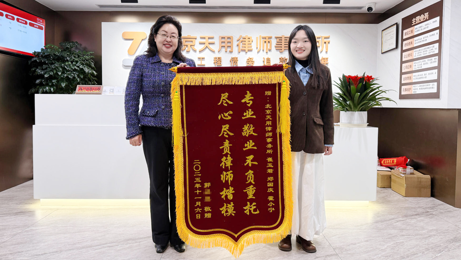 这笔历时已久、几乎被拖成“坏账”的欠款,在天用律师的专业介入下,终于成功追回。郭先生对此结果无比满意,特意送来锦旗,以表达对天用律师最诚挚的敬意与感谢!