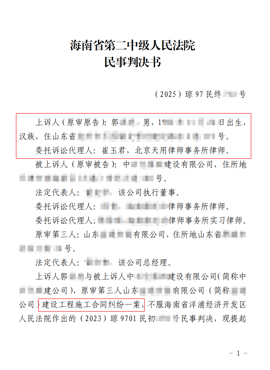 在近乎绝望之际,郭先生于2022年4月找到北京天用律师事务所。经过初步咨询,天用律师对建工领域的丰富经验让他看到了希望,当即办理了委托。