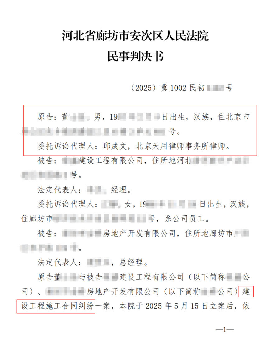 2025年4月,老董找到了北京天用律师事务所。天用律师事务所的工程款专业团队在接到委托后,迅速对案件进行了深度剖析。