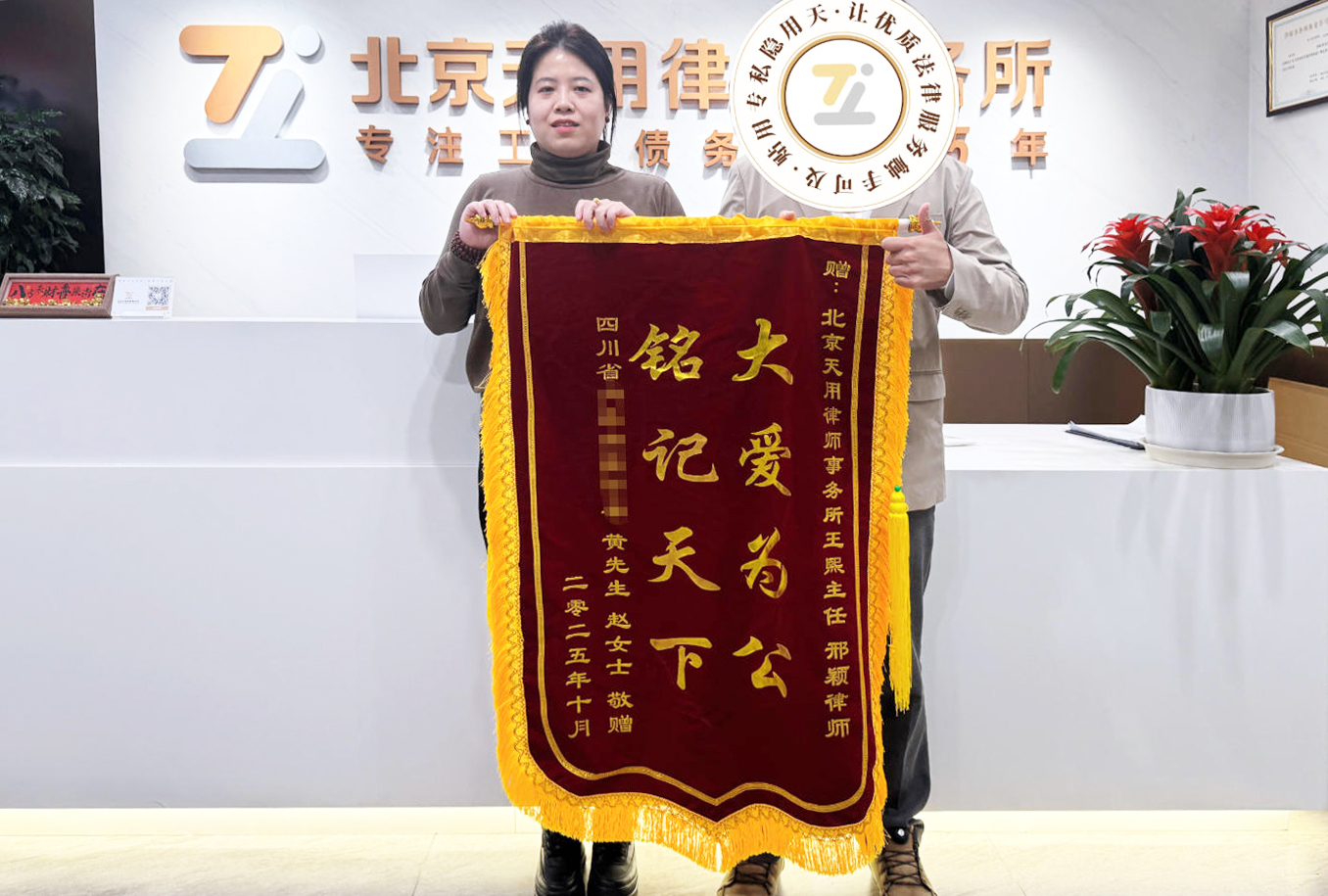 案件结案后,黄先生专程赠送锦旗,对天用律师“尽职尽责、专业高效”的服务精神表示高度认可。他表示:“律师团队不仅帮我要回了拖欠多年的工程款,更在调解中争取到分期支付的主动权,避免了打官司的消耗!”