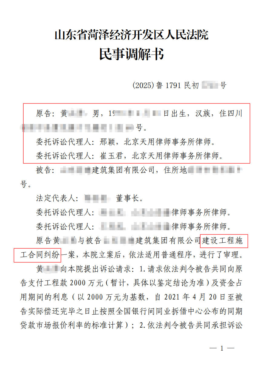 本案中,天用律师以建设工程领域深耕经验为基础,通过证据精细化准备、诉讼策略灵活调整及谈判技巧娴熟运用,将复杂纠纷化解于调解阶段,减少当事人诉累。