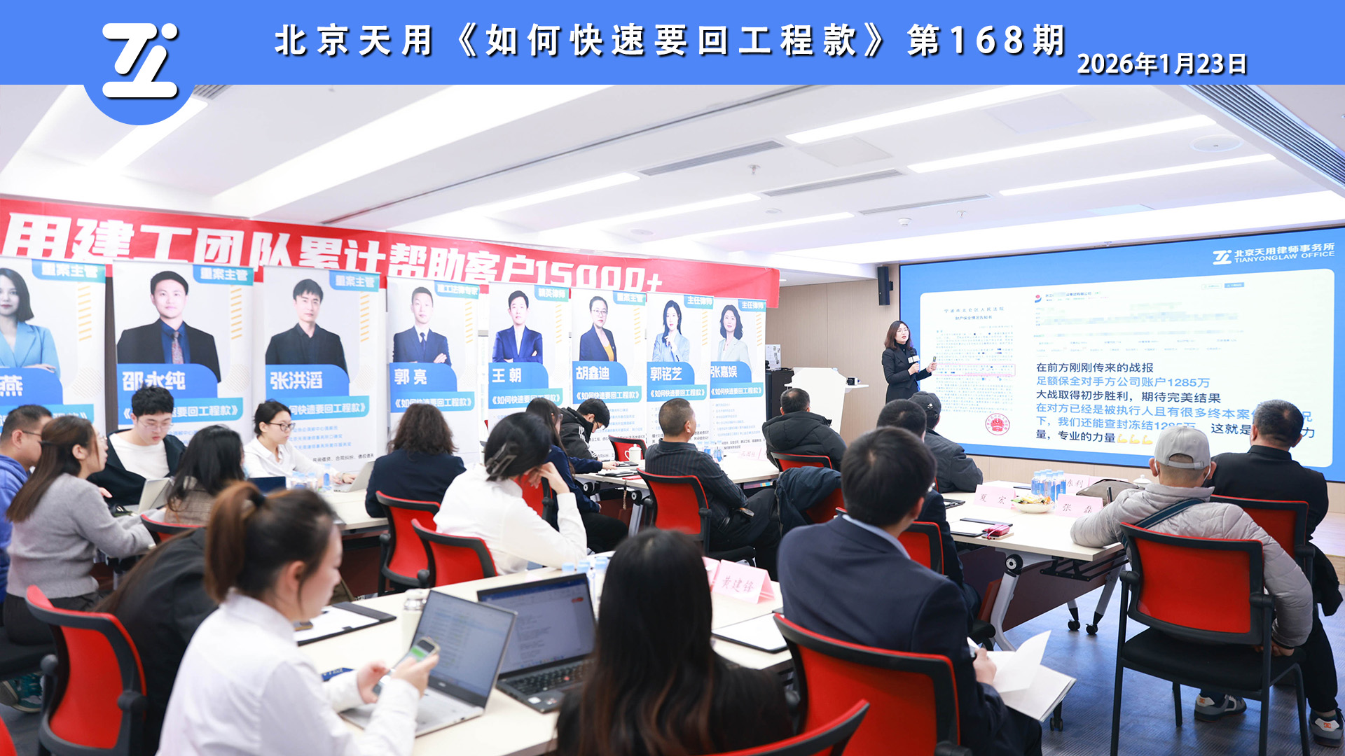 2026年1月23日下午,北京天用律师事务所第168期《如何快速要回工程款》专题讲座现场,十余位从各地赶来的建工老板,带着自己的困惑与焦虑,来寻找切实可行的回款路径。