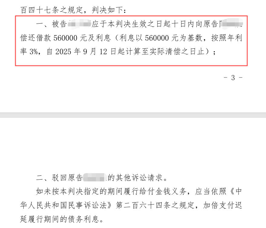 根据法律规定,这被视为其放弃了答辩与举证的权利。天用律师在庭审中,围绕清晰的借贷合意(借条)与完整的资金交付事实(转账记录)进行了有力陈述,使得案件事实一目了然。法院经审理采纳了我方主张,判决支持陶先生的全部诉讼请求:判令被告林某限期偿还全部借款本金56万元以及支付逾期利息,案件受理费由被告林某承担。